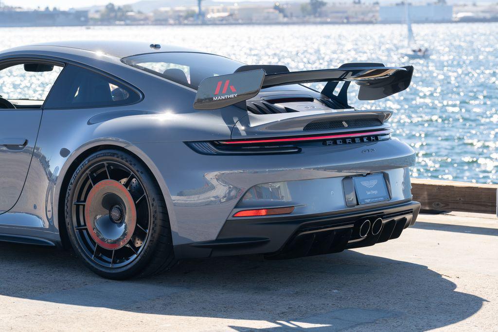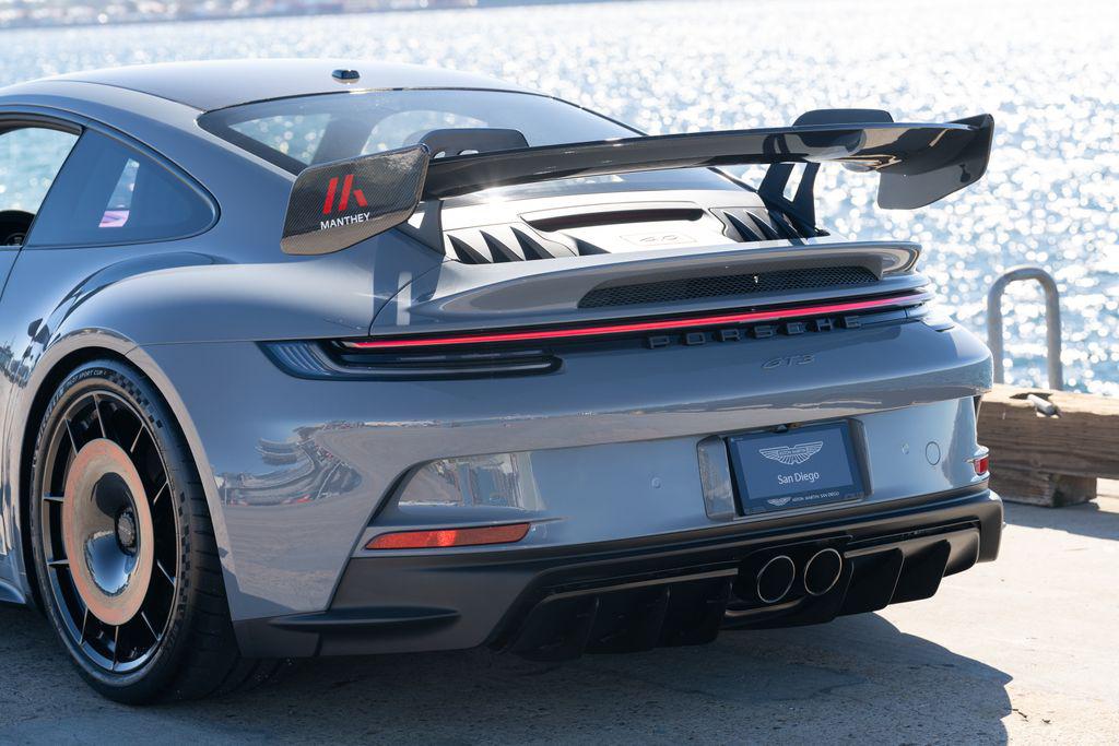 2023 Porsche 911 GT3 ""Manthey Racing""Chassis No. WP0AC2A96PS271065This 2023 Porsche 911 GT3 was delivered new in August 2023 to its original owner through The Collection Porsche in Coral Gables, Florida. Finished with a desirable factory specification and later upgraded with the Manthey Racing Performance Kit, this example represents one of the most focused and highest-performing variants of the 992.1 GT3 platform available.Power comes from a naturally aspirated 4.0-liter flat-six rated at 502 horsepower, paired with a GT3-specific 7-speed PDK transmission. The engine revs to 9,000 rpm and features individual throttle bodies for immediate response. Porsche quotes 060 mph in under three seconds with launch control.The 992-generation GT3 introduced a double-wishbone front suspension derived from Porsches racing program, along with extensive aerodynamic revisions including a swan-neck-mounted rear wing. Braking is handled by large cross-drilled rotors with multi-piston calipers, and the car rides on center-lock wheels.Notable Factory Options Include: Leather/Race Tex-Interior with GT Silver Stitching $4,730 Arctic Grey Paint $4,220 Carbon Fiber Roof $3,890 Front Axle Lift System $3,670 Adaptive Sport Seats Plus (18-Way) $2,640 Exterior Mirror Trim in Carbon Fiber $1,630 Bose Surround Sound System $1,600 Wheels Painted in Satin Neodyne $1,290 Exclusive Design Taillights $990 LED Headlights in Black with Porsche Dynamic Light System (PDLS) $850 Chrono Package with Preparation for Lap Trigger $550-Manthey Racing Performance Kit:This example was subsequently fitted with the Manthey Racing Performance Kit, developed by Manthey Racing in cooperation with Porsche. The package was engineered to further enhance aerodynamic efficiency, chassis response, and braking consistency on track.According to Porsche testing, a GT3 equipped with the Manthey kit recorded a 4.19-second faster lap time around the Nurburgring Nordschleife compared to the standard car.The kit includes: Enlarged rear wing with revised aero profile and Gurney flap Revised front aero elements and underbody components Carbon-fiber rear diffuser elements Lightweight forged wheels with carbon rear aero discs (reducing unsprung mass by approximately 16 lbs) Four-way adjustable coilover suspension co-developed by Manthey and Porsche Increased spring rates (approx. 10% front / 7% rear) Braided steel brake linesThe Manthey kit represented an investment of over $57,000 plus installation.---Condition & ServiceThe car has been serviced at an authorized Porsche dealership and was recently acquired by Aston Martin San Diego. It is current on service and has received new tires in preparation for sale.---Investment PerspectiveNaturally aspirated GT3 models continue to represent a shrinking segment of the modern performance market. As electrification and turbocharging become standard across the industry, high-revving engines such as the 4.0-liter in the 992.1 GT3 are increasingly viewed as the end of an era.Examples fitted with the factory-supported Manthey Racing Performance Kit remain limited relative to standard production cars and appeal to buyers seeking the most track-capable specification available without stepping into RS territory.For collectors and drivers alike, this represents a well-optioned, properly upgraded 992 GT3 with documented provenance and one of the most desirable performance packages offered for the platform.